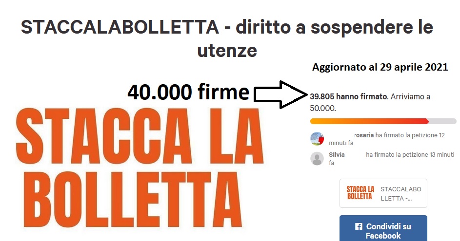 Per aderire alla petizione #staccalabolletta è sufficiente seguire le indicazioni alla pagina