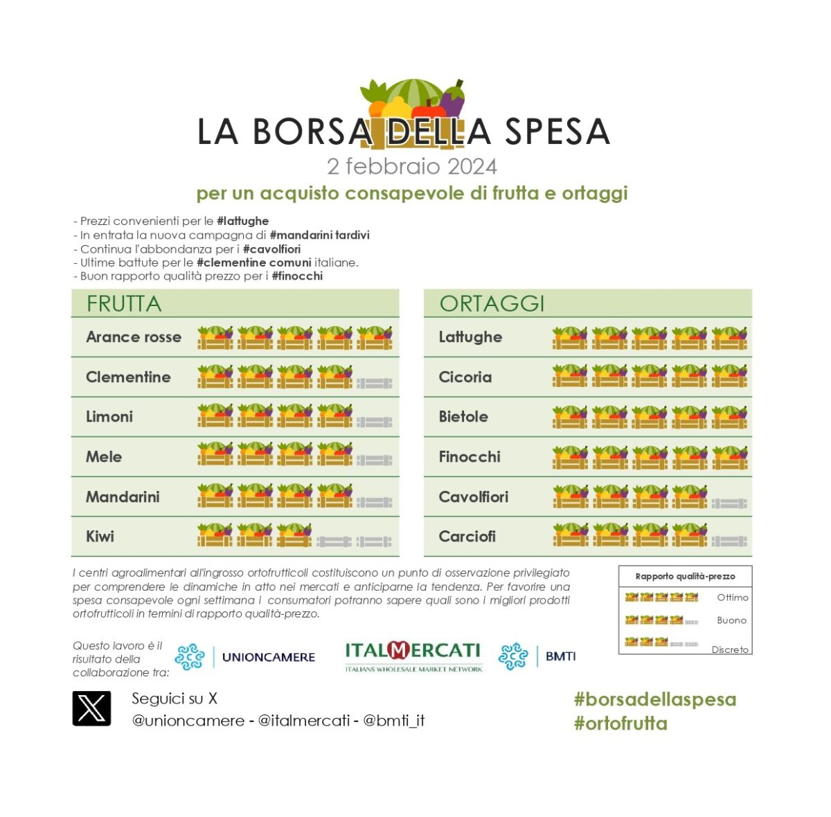 Roma, 2 febbraio 2024 – È stata pubblicata “La Borsa della Spesa”, lo strumento che guida i consumatori nell’acquisto dei prodotti nella settimana dal 2 all’8 febbraio.