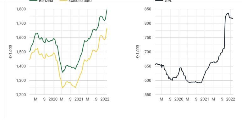 Prosegue l’ondata di rincari nel settore dei carburanti, con le nuove rilevazioni MITE che certificano come la benzina la settimana scorsa abbia viaggiato verso quota 1,8 euro al litro, mentre il gasolio si avvicina alla soglia di 1,7 euro al litro.