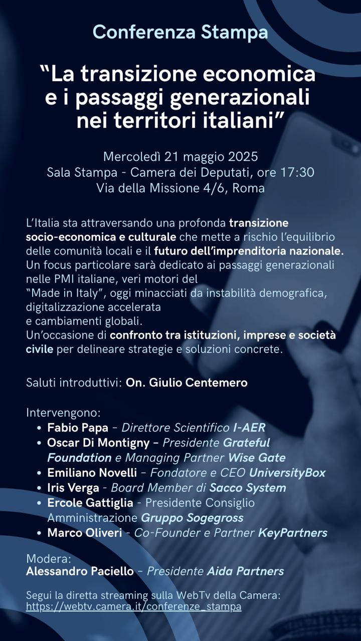 È da questa consapevolezza che nasce il dibattito socio-economico dal titolo “La transizione economica e i passaggi generazionali nei territori italiani”, ospitato nel pomeriggio di ieri, 21 maggio, nella Sala Stampa della Camera dei Deputati, su iniziativa dell’On. Giulio Centemero. L’incontro ha riunito figure del mondo economico, imprenditoriale e accademico per analizzare da più prospettive le sfide poste dal ricambio generazionale nelle aziende italiane ma anche per riflettere sulle trasformazioni più ampie che attraversano oggi le comunità locali.