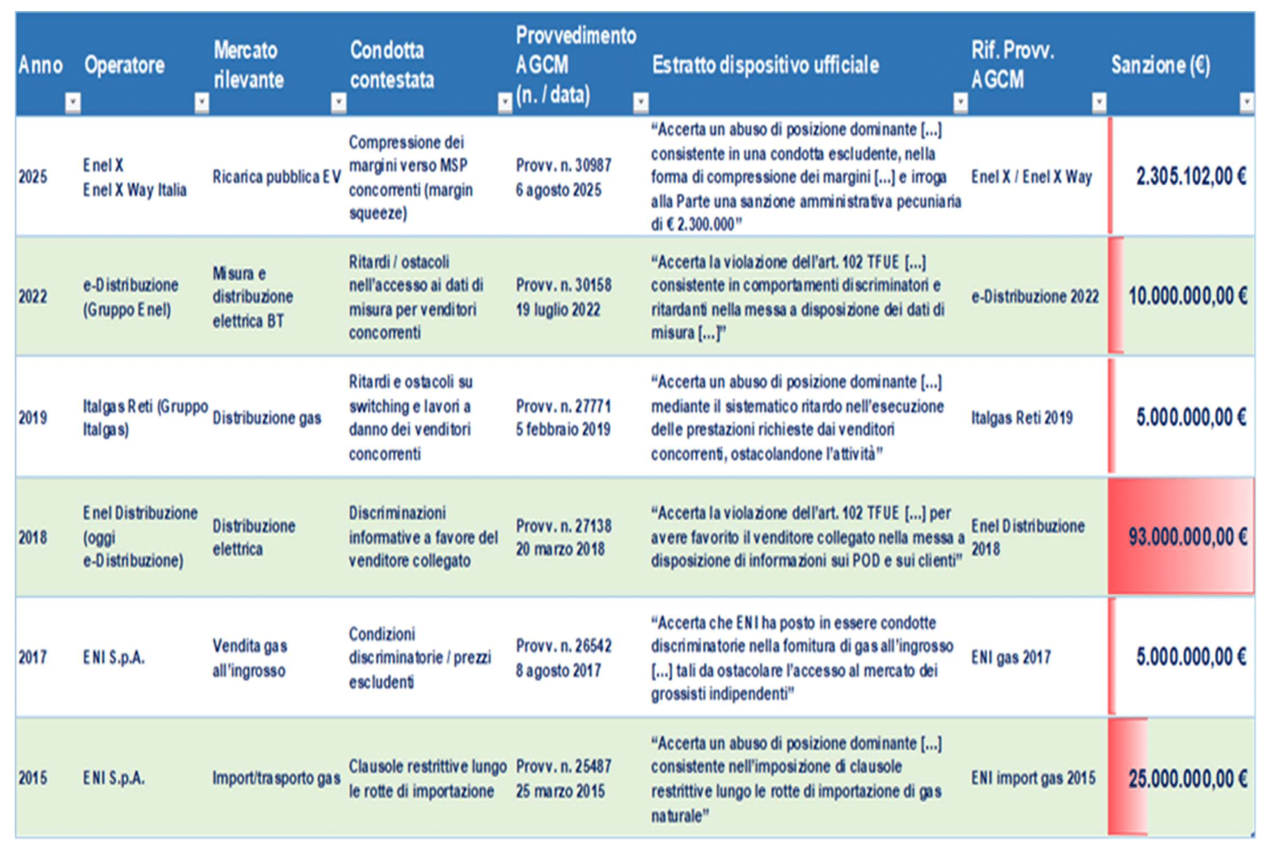A confermare l’anomalia del mercato, oltre ai dati ARERA, ci sono anche le sentenze AGCM – Autorità Garante della Concorrenza e del Mercato (Antitrust), tra queste, l’ultima è stata pubblicata nei giorni scorsi: