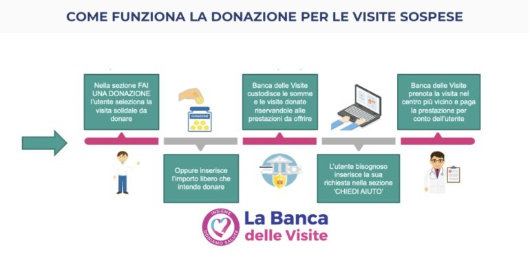 La piattaforma solidale che gestisce donazioni e richieste è direttamente il sito web www.bancadellevisite.it, la centrale operativa si occupa poi di ricontattare gli utenti, recepirne le necessità e di assicurare loro la visita di cui c’è bisogno, nel più breve tempo possibile, più vicino possibile a loro.