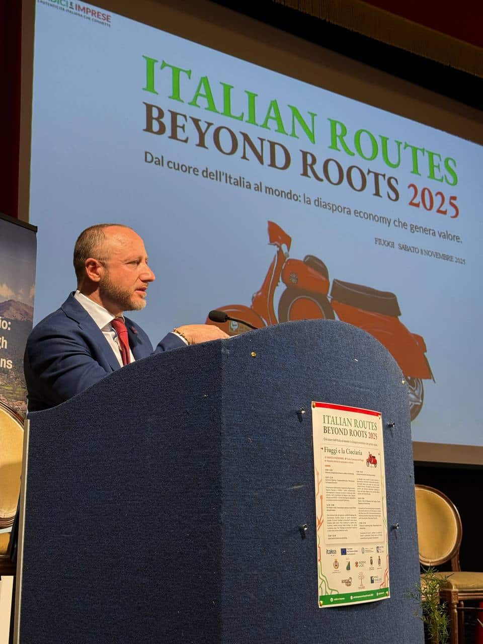 Il Teatro Comunale di Fiuggi ha ospitato istituzioni, imprese, rappresentanti della diaspora e protagonisti del Made in Italy che hanno condiviso una visione comune: trasformare il legame con le origini in un motore di sviluppo sostenibile. L’apertura dei lavori ha visto gli interventi di Sonia Fiorini per Italea Lazio, Ivan Serafini per Italea Abruzzo e Marco Rosso di NeverEndingTourism. Sono intervenuti anche Roberta Angelilli, vicepresidente della Regione Lazio e assessore allo sviluppo economico e Cristian Parone, presidente del Consiglio Comunale di Caramanico Terme.