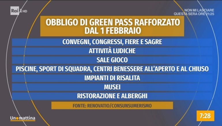 OBBLIGO DI GREEN PASS RAFFORZATO