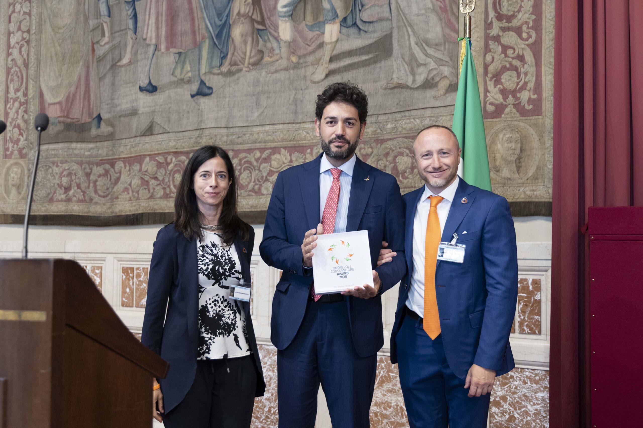 “Per il suo ruolo attivo nella proposizione di modifiche legislative e nel sollecito di interventi governativi volti a contrastare il telemarketing illegale, dimostrando una concreta attenzione alla tutela dei diritti dei consumatori e alla loro tranquillità, il Deputato Andrea Barabotti merita un riconoscimento per il suo impegno in questo ambito. Per questo motivo gli viene conferito l’ONorevole COnsumatore Award 2025.”