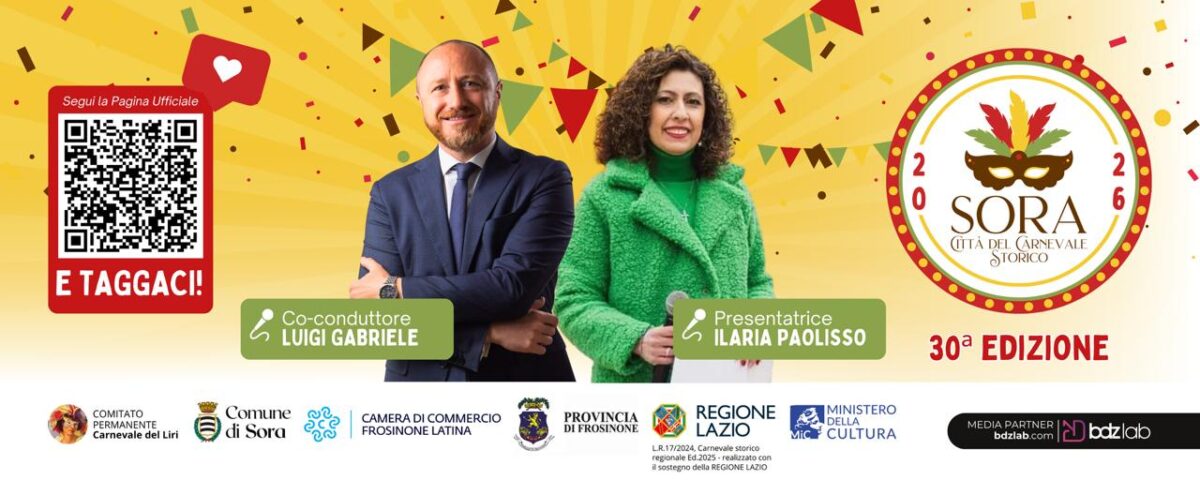 Sora Città del Carnevale Storico festeggia un trentennale da primato, e alla conduzione della parata del 17 febbraio ci sarà quest’anno il presidente di Consumerismo No Profit, Luigi Gabriele, giornalista consumerista e volto noto dei principali palinsesti economici del Paese, che torna nella sua città natale per presentare la manifestazione assieme alla collega Ilaria Paolisso.