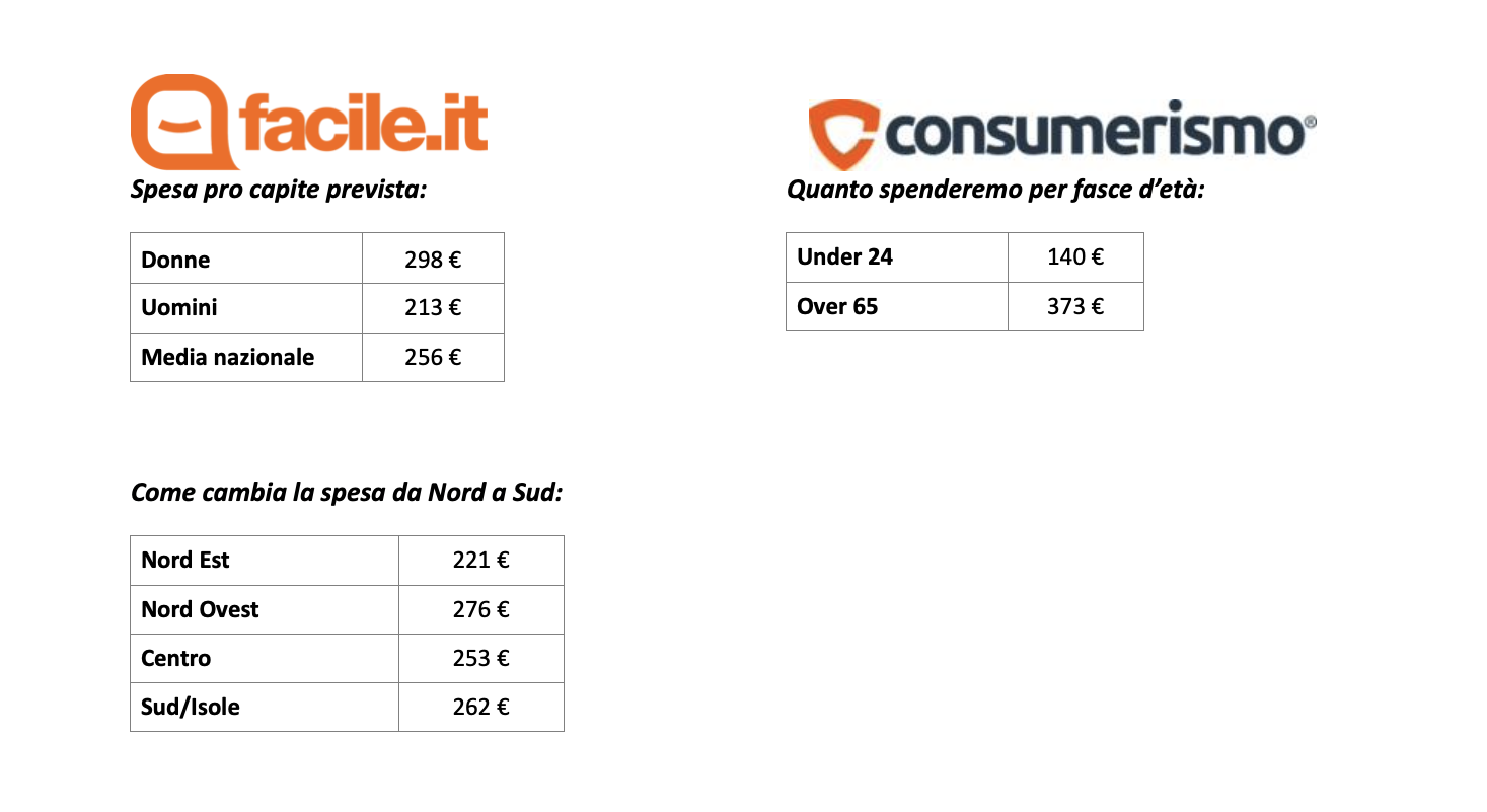 Perfino a livello territoriale sono emerse delle differenze importanti: nel Nord Ovest si tende a scegliere regali economicamente più importanti rispetto a tutto il resto della Nazione. In media spenderanno 276 euro, valore leggermente più alto rispetto ai 262 del Sud e delle Isole. Dati inferiore rispetto alla media nazionale per il Centro Italia (253 euro) e per il Nord Est (221 euro).