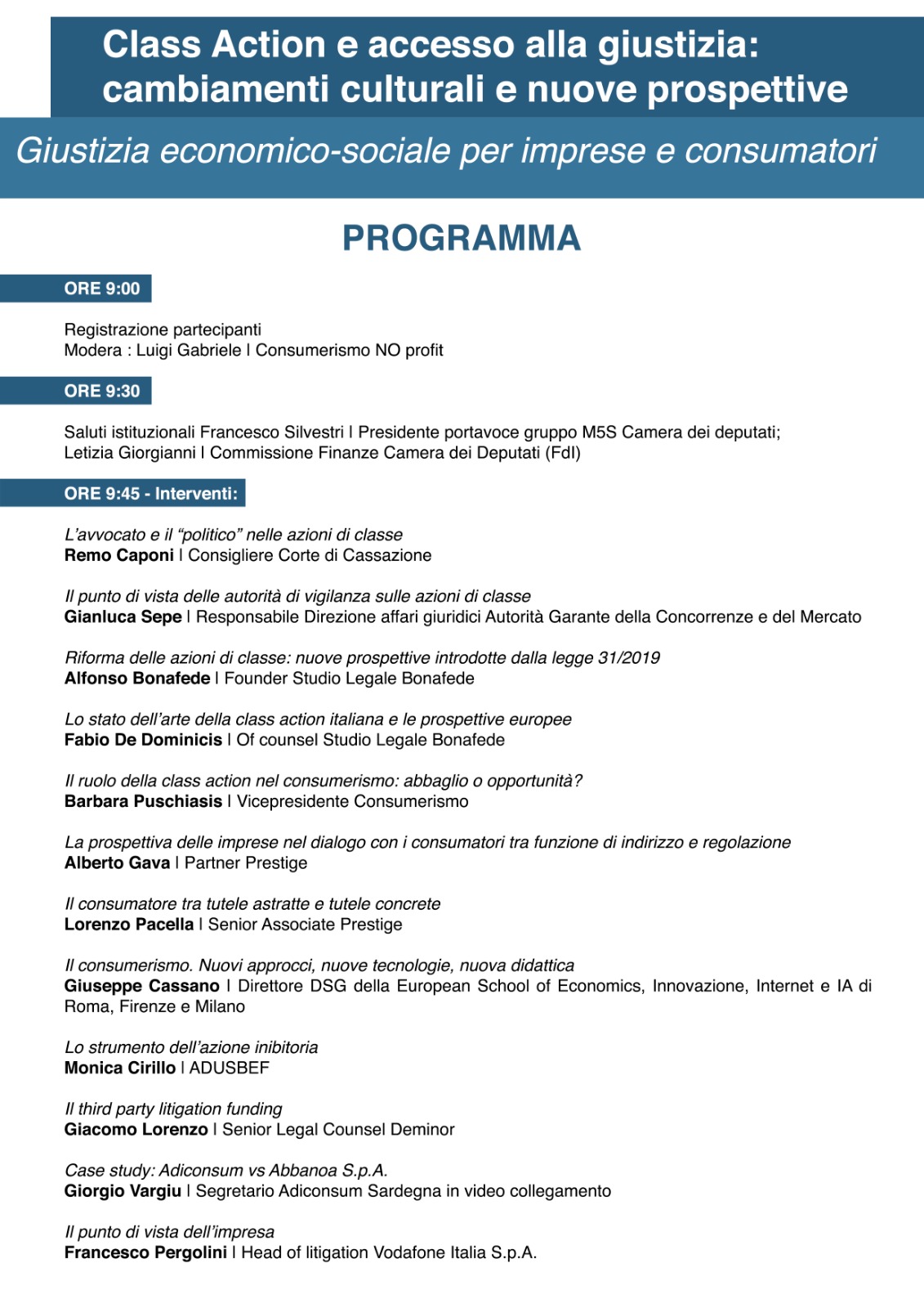 Il convegno vedrà interventi di giudici, avvocati, docenti universitari, autorità garanti, esponenti delle imprese e associazioni di consumatori. L’obiettivo è individuare continuità e innovazioni nella class action, analizzando il passato, osservando il presente e proponendo soluzioni pratiche per il futuro. Lo sviluppo del diritto è connesso alla società stessa, e il principale impulso proviene dalle azioni di coloro che comprendono e difendono i propri diritti attraverso l’uso degli strumenti giuridici disponibili.
