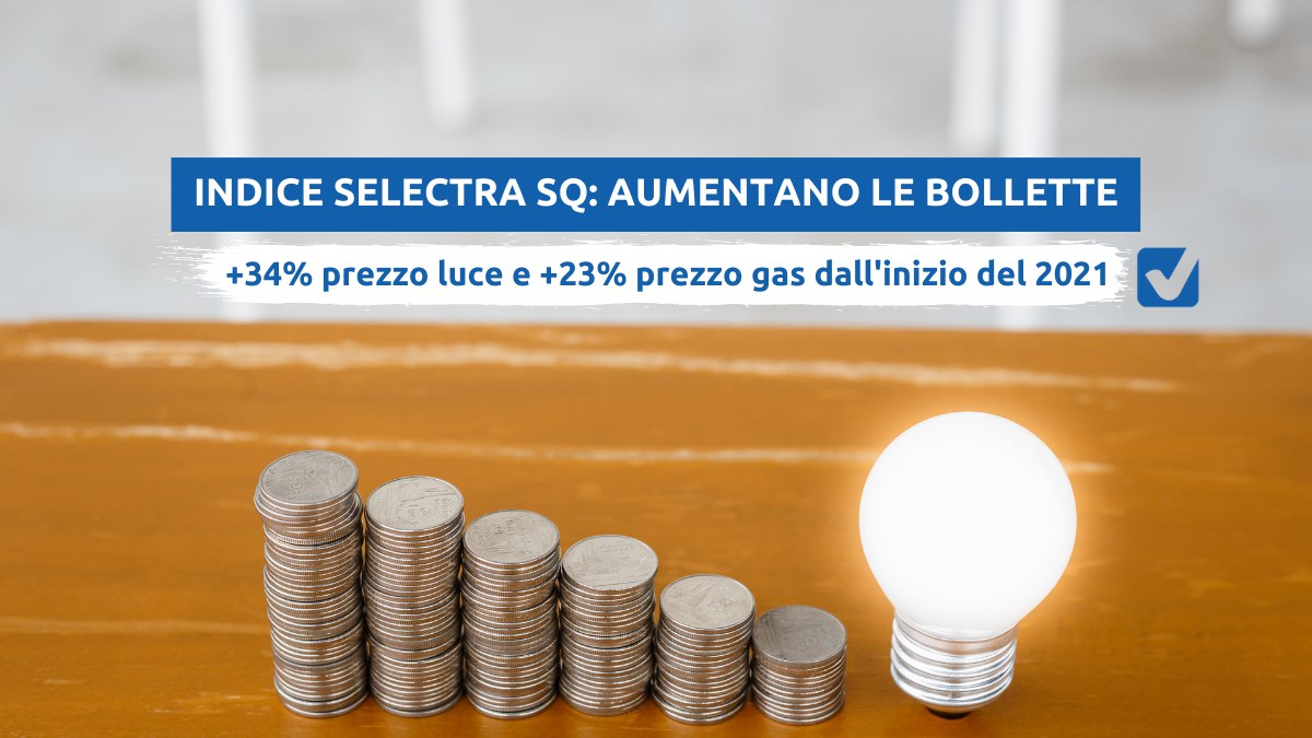 Indice Selectra SQ: luce +34% e gas +23% dall’inizio del 2021. Cosa sta succedendo e come risparmiare