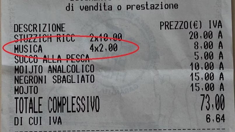 Un aperitivo estivo a Ostuni si è trasformato in uno scontrino che ha lasciato di stucco i clienti. Quattro persone hanno ordinato drink e stuzzichini in un locale del centro storico, ma al momento del conto hanno trovato una voce inattesa: “musica”, con un supplemento di 2 euro a testa, per un totale di 8 euro in più rispetto alle consumazioni. Nessuna comunicazione preventiva, nessuna indicazione sul menù, solo l’amara sorpresa al momento del pagamento.