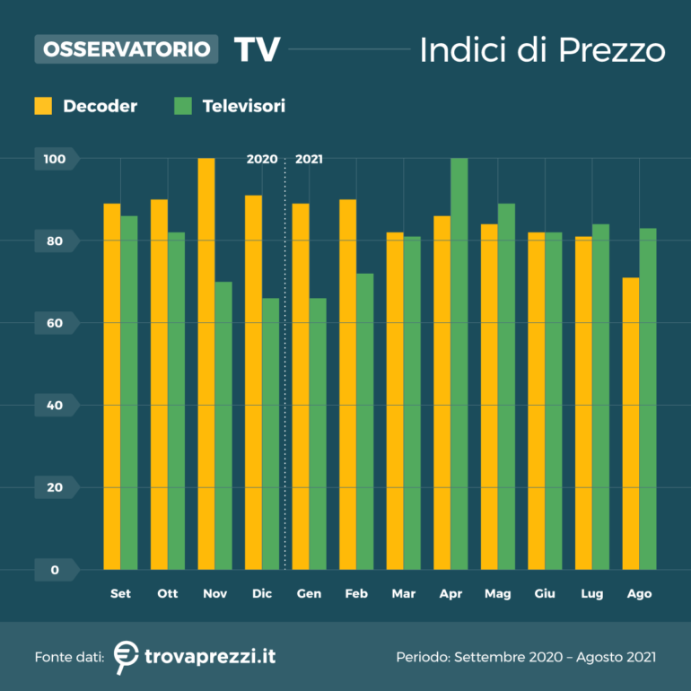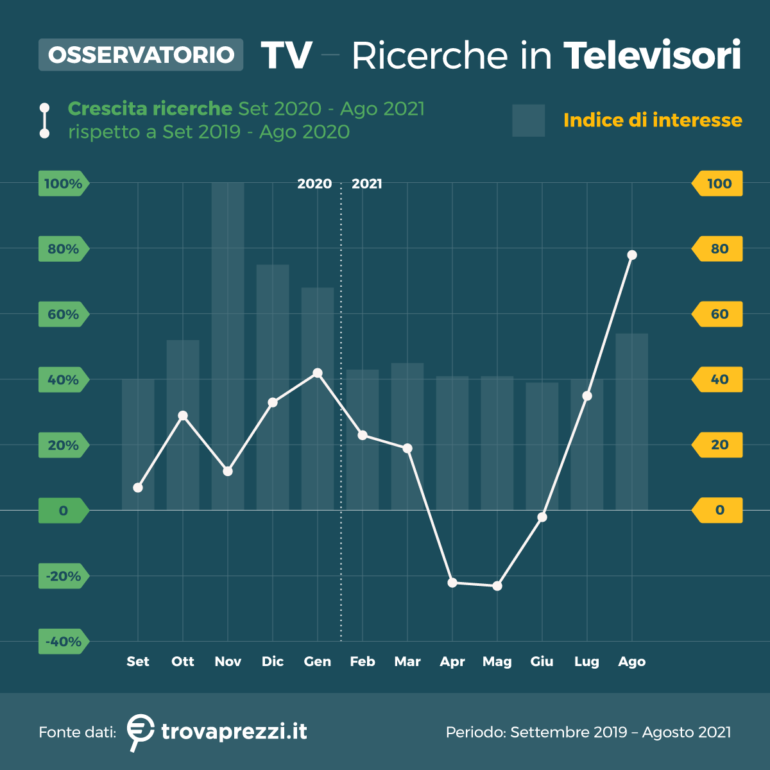 Lo studio prende in esame le ricerche effettuate su Trovaprezzi.it nelle categorie Decoder e Televisori nel periodo 1° settembre 2019 – 31 agosto 2021