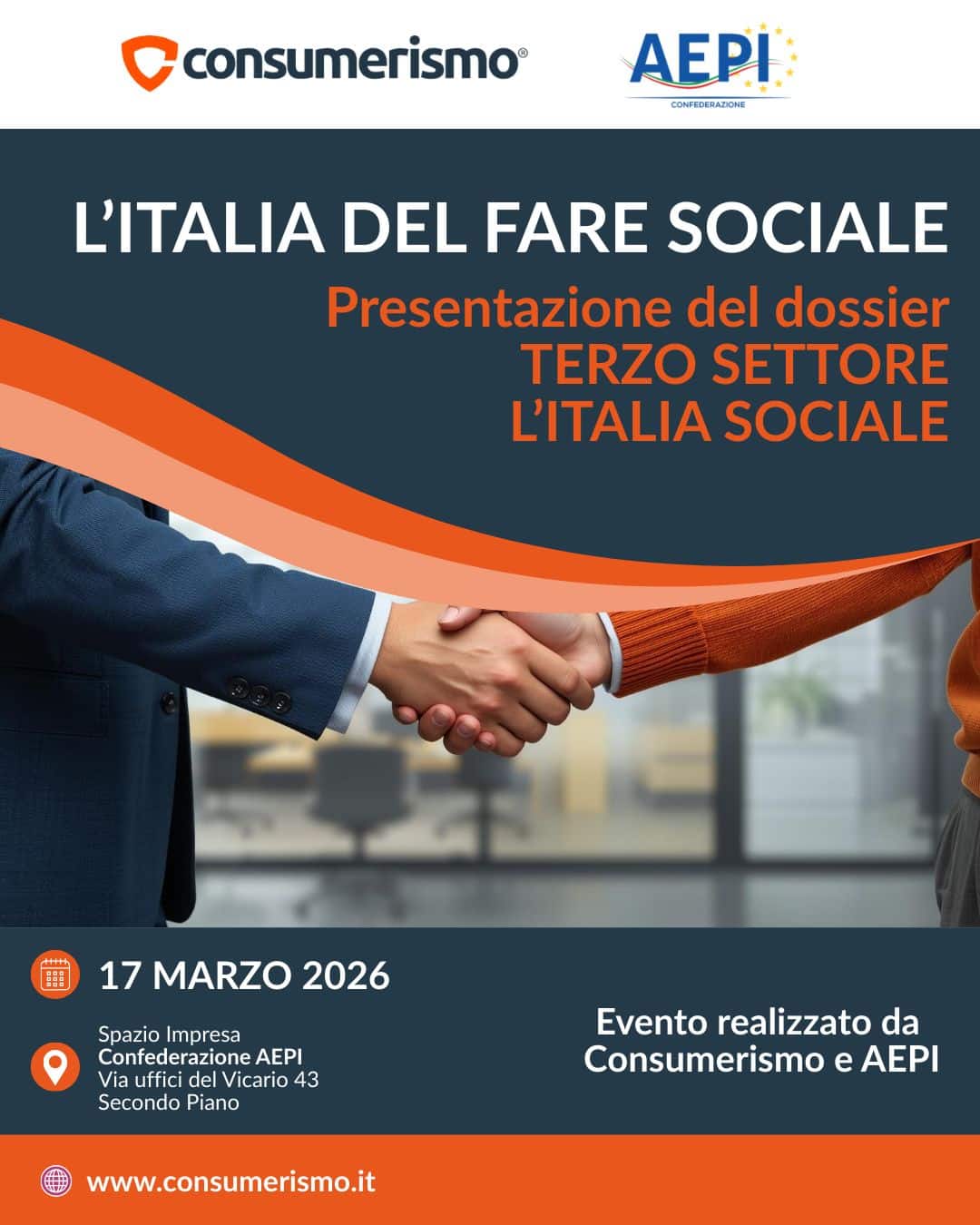 Il 17 marzo 2026 – Consumerismo No Profit e la Confederazione AEPI presentano