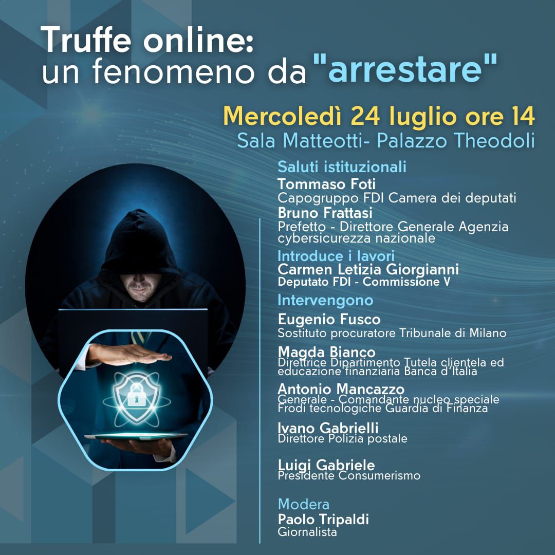L’incontro sarà anche l’occasione per ascoltare le testimonianze di Antonio Mancazzo, Generale e Comandante del Nucleo Speciale Frodi Tecnologiche della Guardia di Finanza, e Ivano Gabrielli, Direttore della Polizia Postale, che illustreranno l’impegno delle forze dell’ordine nella lotta alle truffe online.